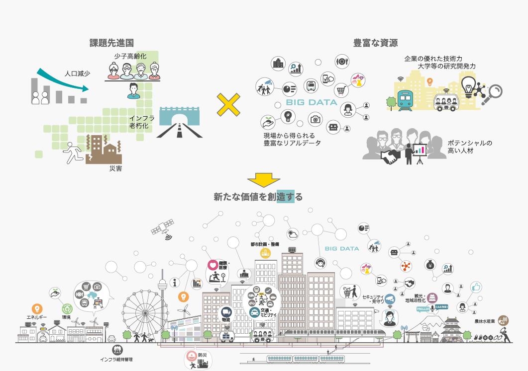 サイバーとフィジカルを高度に融合したSociety 5.0 の実現に向け、AI、IoTなどの新技術やデータを活用したスマートシティをまちづくりの基本コンセプトとして位置付け、スマートシティの取組を官民連携で加速するため、自治体および企業・研究機関、関係府省などを会員とする「スマートシティ官民連携プラットフォーム」を発足。