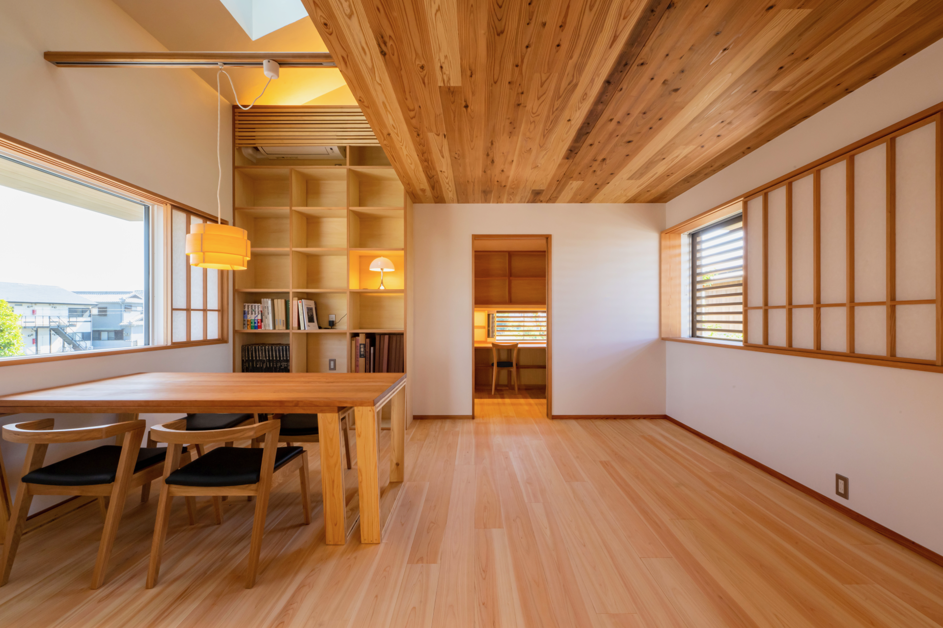 本店舗は同敷地内に、伊礼 智氏が設計した規格型住宅を全国の地域工務店が建設できる『i-works(アイ・ワークス)project』のモデルハウスと、同じく伊礼 智氏が設計した『i-works小屋』を構え、スモールビレッジのような形でオープンしており、顧客が商談の合間に店舗を訪れることができる動線を整えています。また、こちらのモデルハウスは『i-works project』の第5弾となる新タイプ『i-works5.0』を採用した初のモデルハウスとなっており、東西に長く南面の間口が広い昔ながらの3間×5間の形状が郊外に適した住宅として規格化されております。