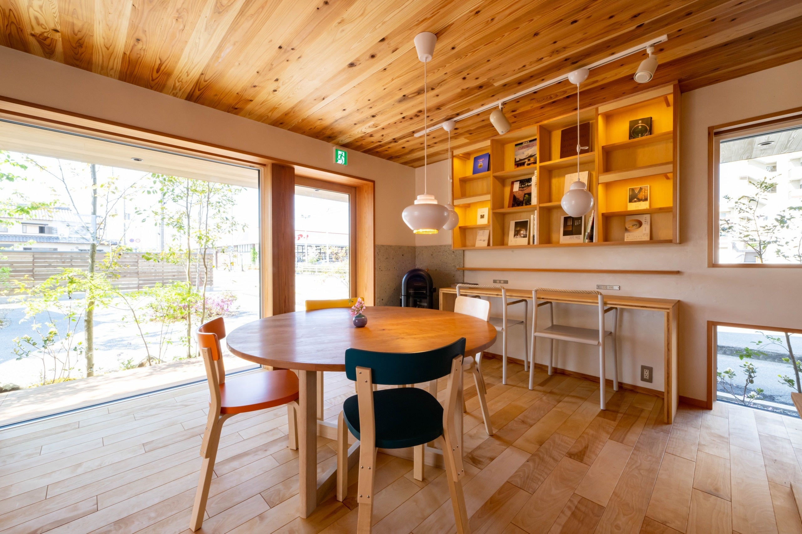 また、本店舗の建築は林野庁の令和4年度『CLT活用建築物等実証事業』を活用しており、CLT建築の良さを周知する地域に開かれたモデル型店舗として運用するために、地域の地場産業である木製家具やCLTを使用した椅子などの木製造作家具及び照明を販売する場としての役割も担っています。