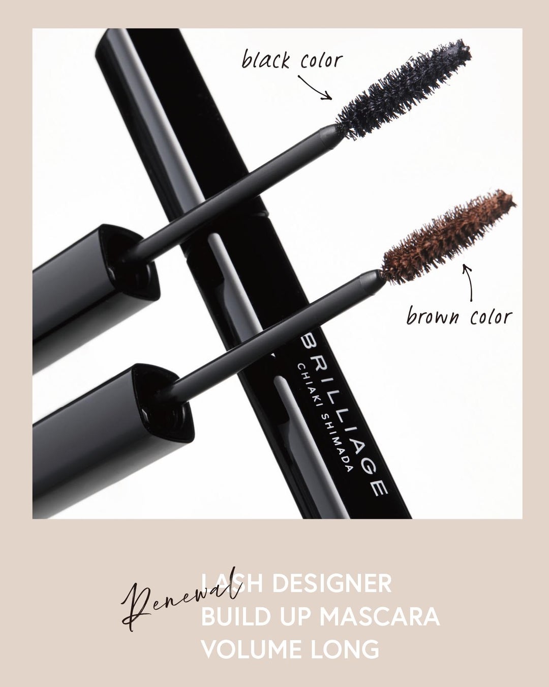 カラーラインナップは、ブラックとブラウンの2色。ブリリアージュ初となるブラウンは、「目元の印象は弱めたくないけれど、まつ毛の存在感を和らげたい」、そんな抜け感に近い絶妙な明るさを叶える嶋田ちあきがこだわり抜いたカラー。大人の目元もぼやけずくっきり。こなれたまなざしを叶えます。