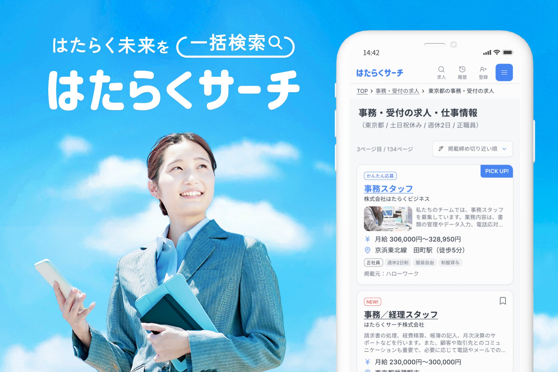 仕事探しから応募までワンストップで行えるサイト『はたらくサーチ』、デザインリニューアルで利便性が向上