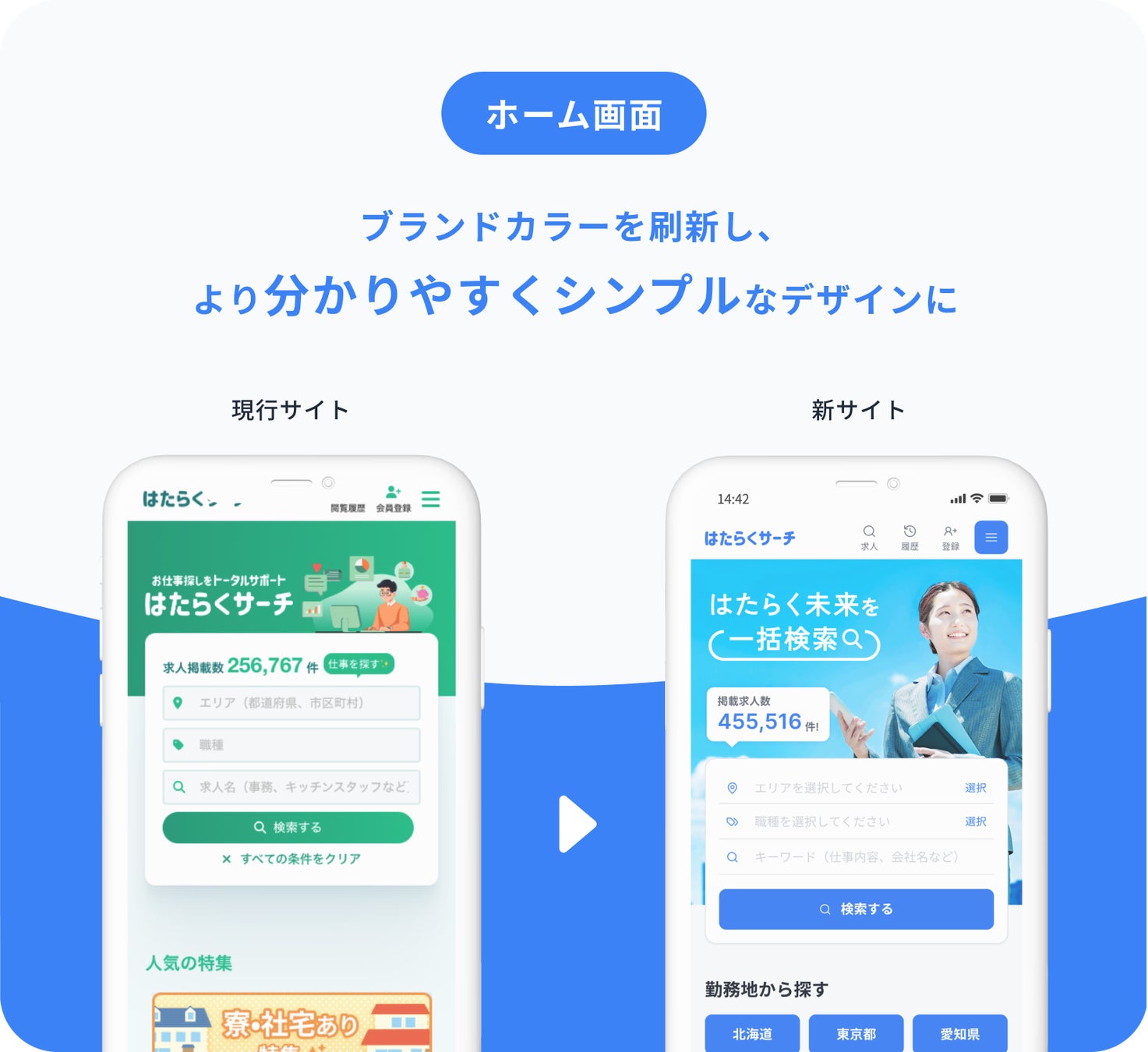 今回のデザインリニューアルでは、求職者の皆さまがより快適に求人情報を閲覧・応募できるよう、ユーザーインターフェースの改善を中心に、以下の3点を重点的に見直しました。