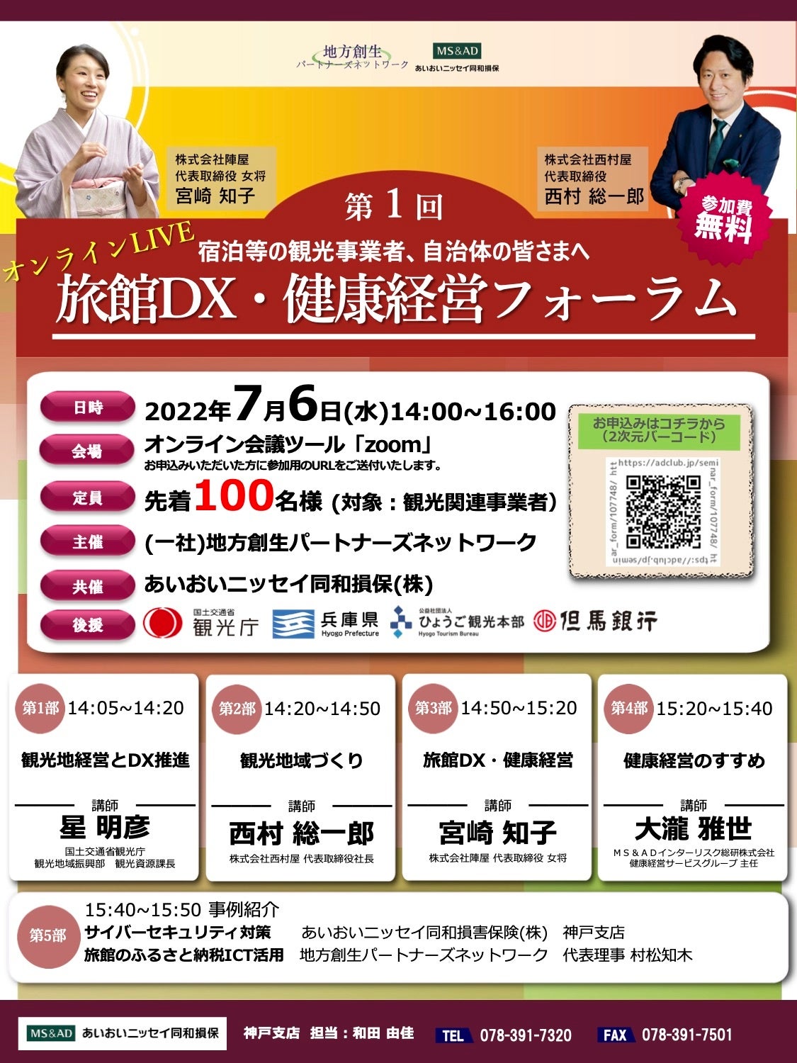 【旅館DX・健康経営】あいおいニッセイ同和損保と宿泊施設を対象に「オンラインフォーラム」を開催。
