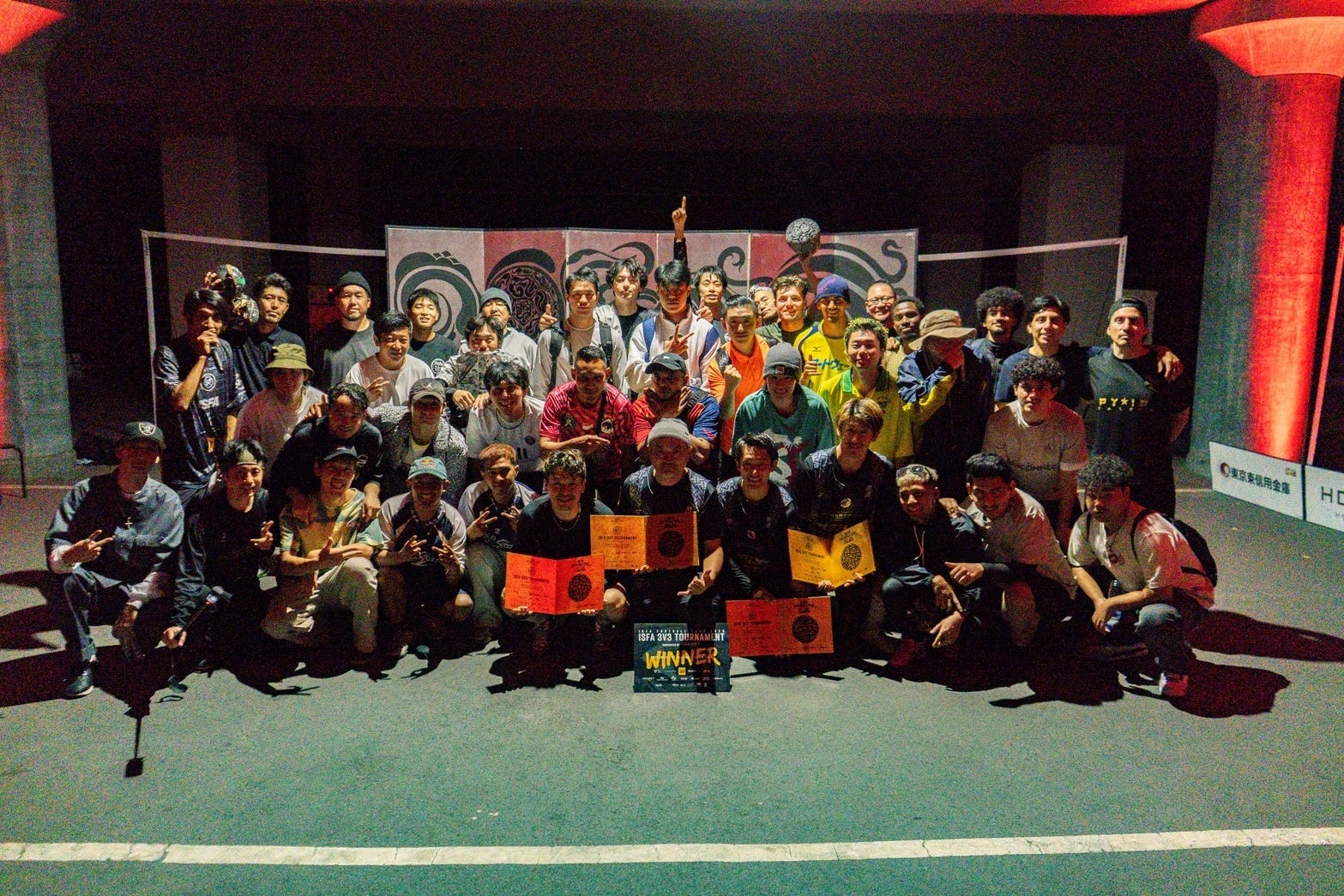 結果は、昨年ラトビアで行われたISFA主催のワールドカップメンバーで構成された"STREETBASE"が優勝、TOP4も全て日本チームが独占致しました。優勝した"STREETBASE"には、オリジナル金屏風が各選手に贈られ大会は幕を閉じました。