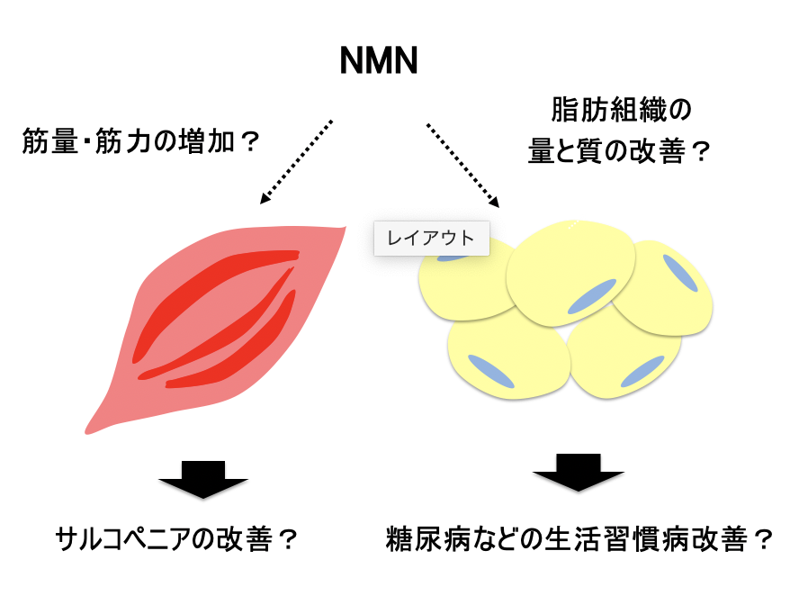 同時に細岡准教授らは、NMNが、脂肪の培養細胞において、脂肪の量と質の両方の変化をもたらす可能性のあるタンパクの量を変化させることを見出しました。そこで、本共同研究では、肥満マウスの脂肪組織において認められる量と質の異常に対するNMNの効果を検証するとともに、脂肪組織の量と質の変化が糖尿病などの生活習慣病を改善させるかどうか検討します。