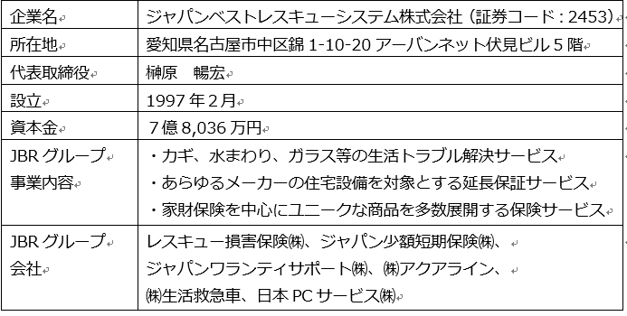 JBRは、「困っている人を助ける」という経営理念として、生活トラブル全般を解決するサービスを全国展開しています。具体的には、ガラスの割換工事、水まわりのトラブル解決、カギの交換、パソコンのトラブル解決などが挙げられます。JBRの強みは、生活の中のお困りごとのワンストップサービスの提供であり、研修制度により確かな技術と接客マナーを身に着けた現場サービススタッフが、全国どこへでも駆けつけることができるネットワーク力があります。(https://www.jbr.co.jp)