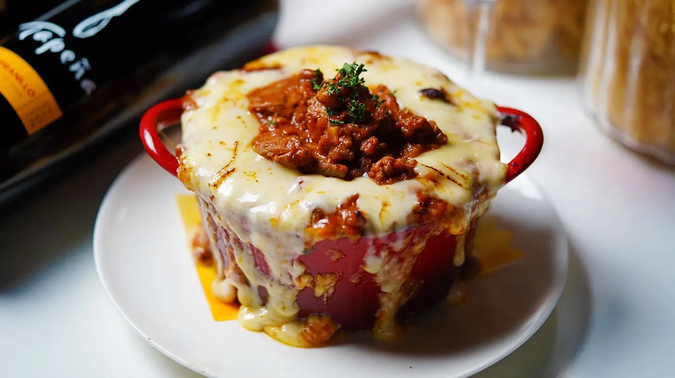 お肉がゴロゴロ入ったボロネーゼを中に閉じ込めていて、香ばしい炙りチーズで蓋をしたインパクト抜群な逸品!