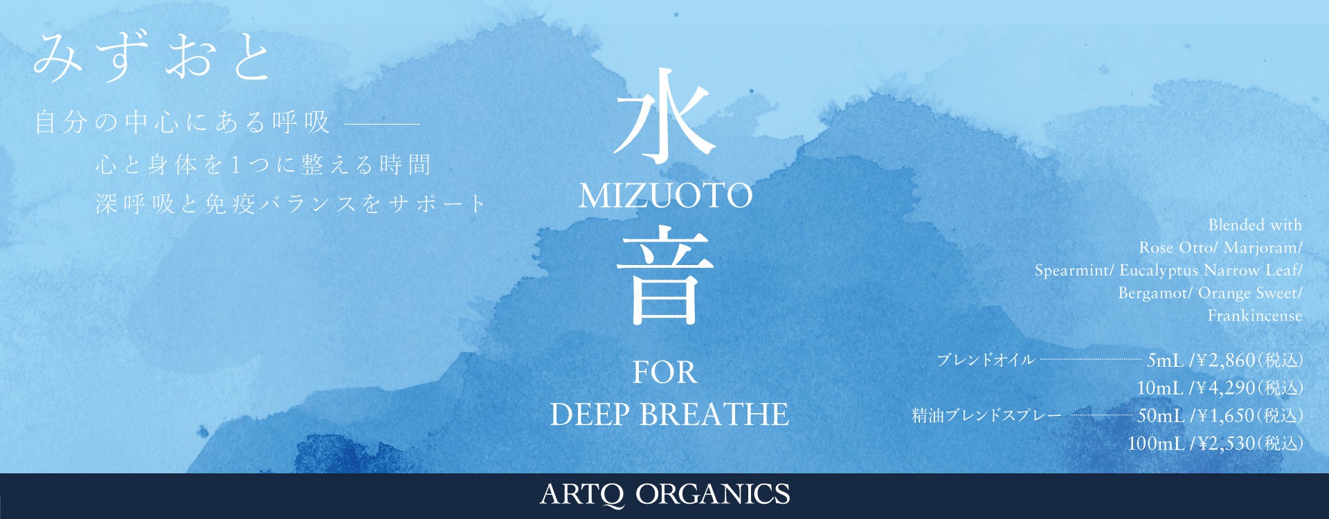 ~深呼吸と免疫バランスをサポートするオーガニックブレンド~『水音‐みずおと‐For Deep Breathe』が新登場!【ARTQ ORGANICS(アロマティーク オーガニクス)】