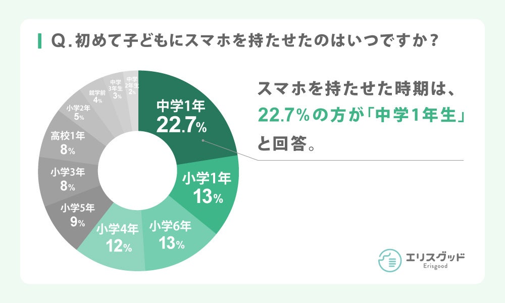 子どもにスマホはいつ持たせる?22.7%の親が「中学1年生から」と回答(URL:https://starcraft-n.co.jp/erisgood/mobile/smartphone/give-child-first-smartphone/)