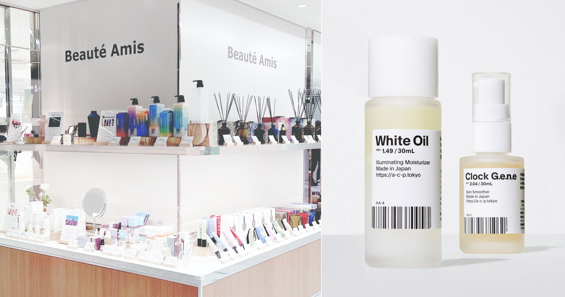 10月28日より「西武池袋本店 2階 ナチュラルコスメ」での販売を開始いたしました。また、オープンを記念して、人気美容液「白いオイル」がセットになった2種類のスペシャル限定キットも発売いたします。