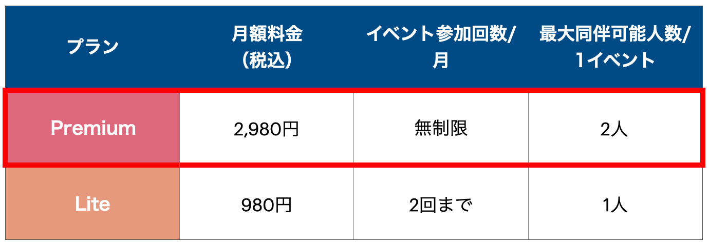 - Premium会員は、会員本人+1名まで追加料金なしで利用できます(「同伴機能」)。