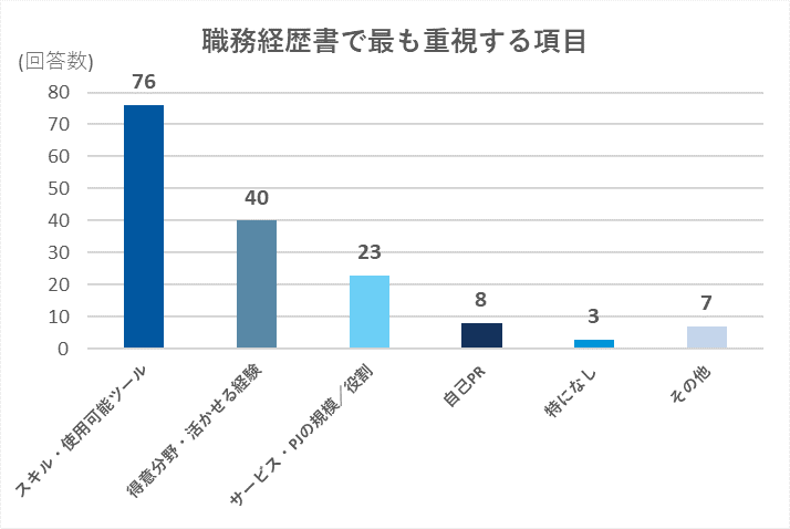 - 職務経歴書の重視ポイントは「スキル・使用可能ツール」