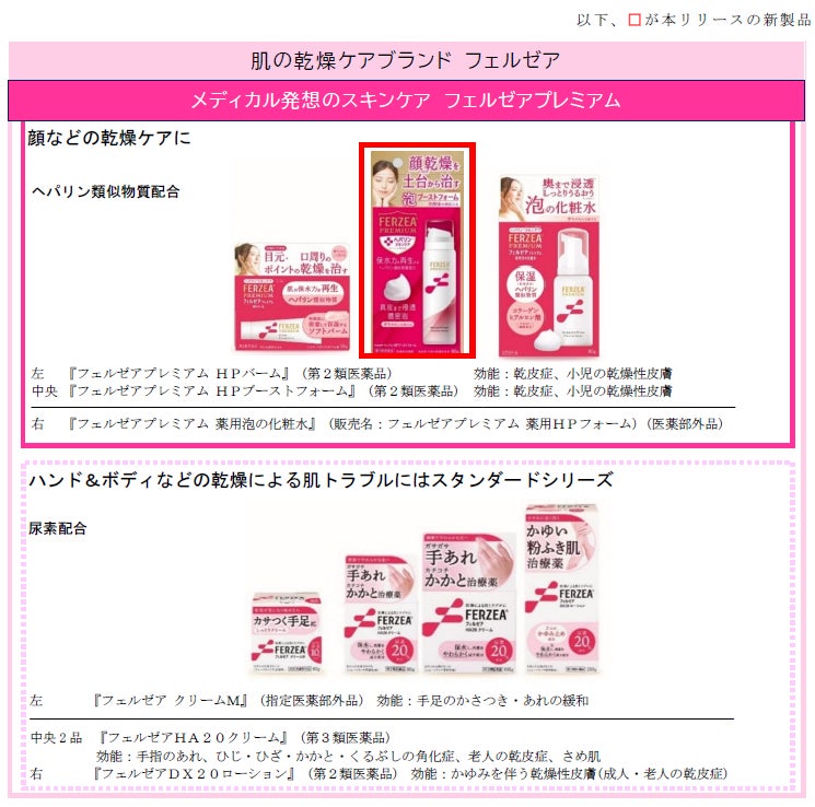 『フェルゼア』は1988 年に“肌の乾燥治療薬”のブランドとして生まれました。乾燥肌の治療成分として長年医薬品に使用されてきた「ヘパリン類似物質」を配合した『フェルゼアプレミアム』シリーズは、2021年9月発売後、乾燥が気になる方にご使用いただいています。