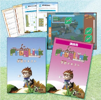 「プログリンク」は、考える過程を大切にした設計の小学生向けプログラミング教材です。1冊単位での買い切り型販売を行っており、45分×20コマでプログラミングの基本を習得できます。講師用の指導ガイドも用意しており、授業への導入もスムーズに行えます。