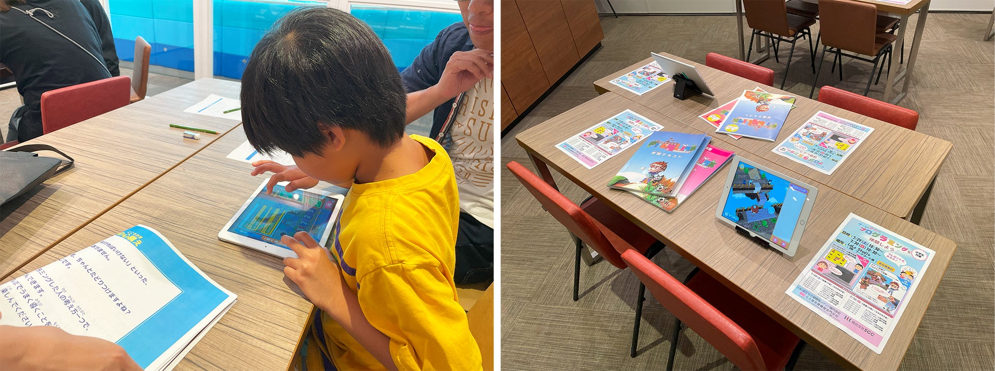 本イベントは、地域の子どもたちの情報教育の発展に貢献するために、昨年に引き続き今年も開催いたしました。参加者のみなさまには、ステージ攻略を通してプログラミングが学べる教材『プログリンク』や、NCS・NMICのオリジナルゲーム「もぐらたたきゲーム」・「シューティングゲーム」の作成を通し、親子でプログラミングを体験いただきました。