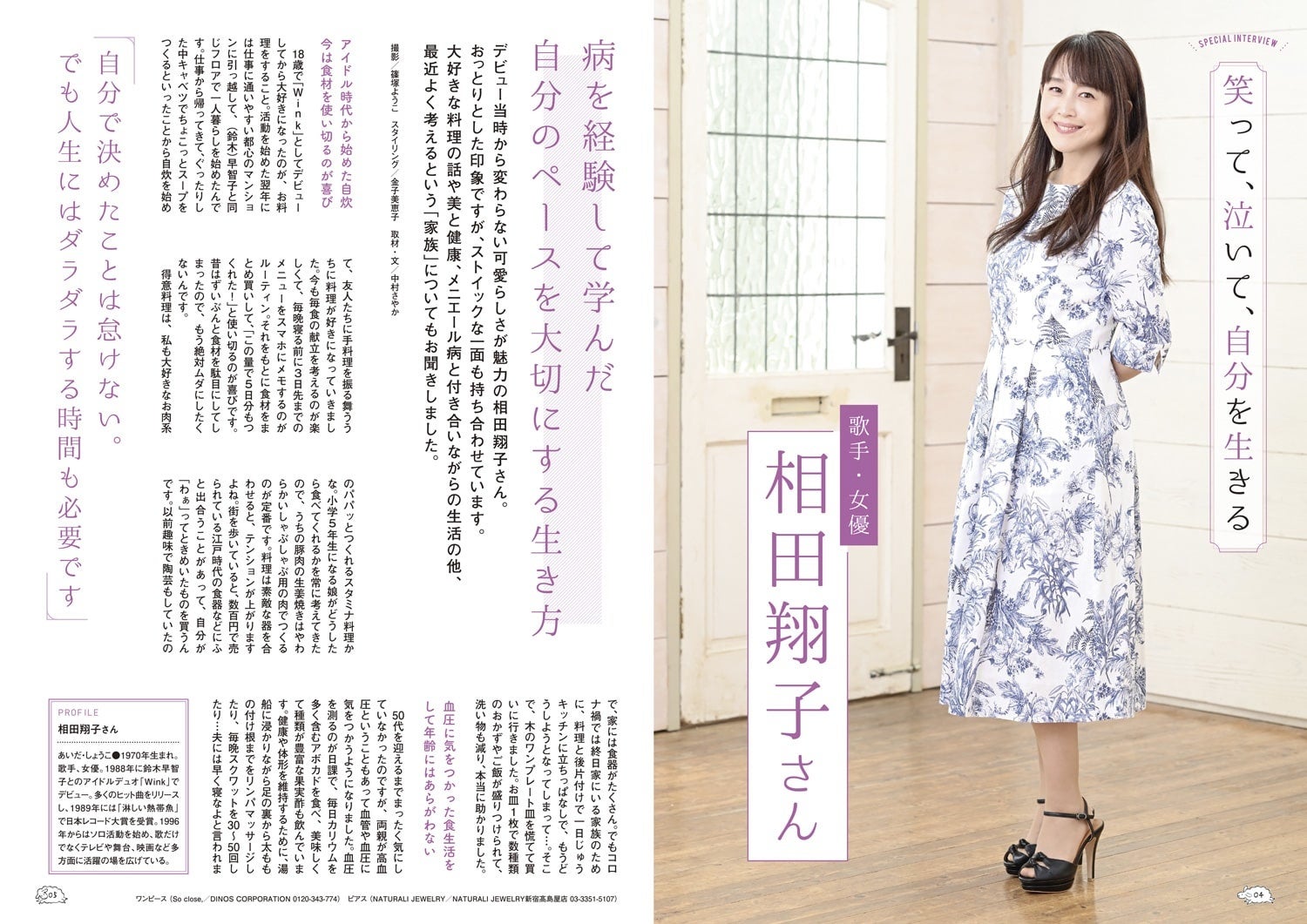 あいだ・しょうこ●1970年生まれ。歌手、女優。1988年に鈴木早智子とのアイドルデュオ「Wink」でデビュー。多くのヒット曲をリリースし、1989年には「淋しい熱帯魚」で日本レコード大賞を受賞。1996年からはソロ活動を始め、歌だけでなくテレビや舞台、映画など多方面に活躍の場を広げている。