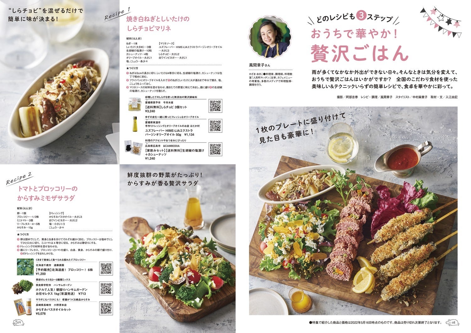 どのレシピも3ステップなのに華やかに贅沢ごはんや、特徴ある全国各地のクロワッサンを徹底解剖した『めりぃなパンマニア』…etc. 産直品いっぱいでおうち時間を楽しくするフリーマガジン。
