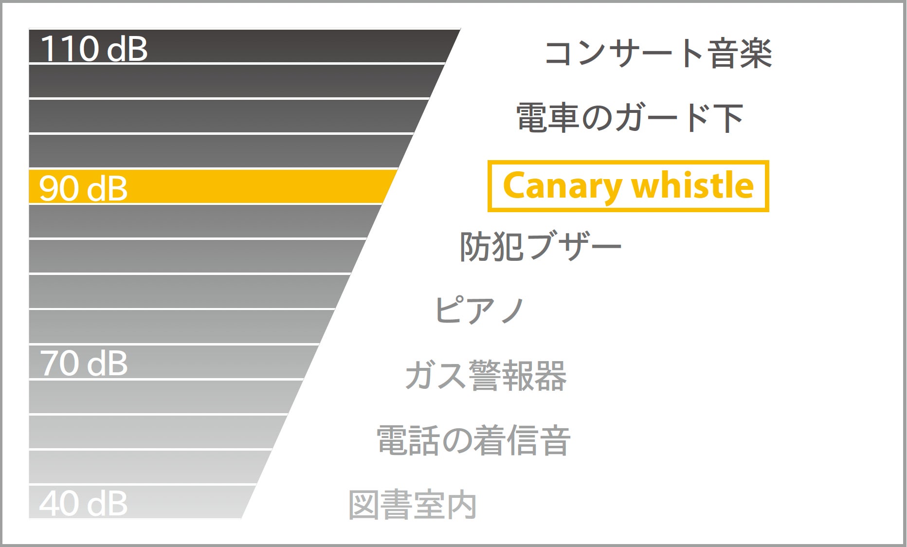 カナリアホイッスルは、かつて鉱山労働者の命を守る為のパートナーとして危険を知らせてくれたカナリアのように、自らの居場所や危険を周囲に知らせてくれるアイテムです。家族や友人など大切な人々の命を守る手助けを何十年と果たしてくれることを願ってつくりました。