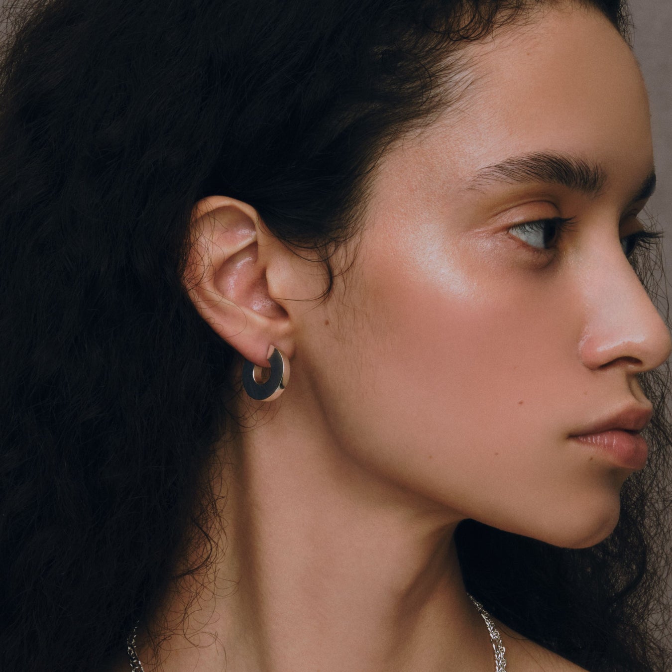シンプルな装いにひとつ付けて、コンテンポラリーなムードを漂わせて。