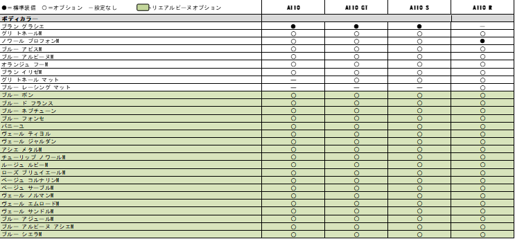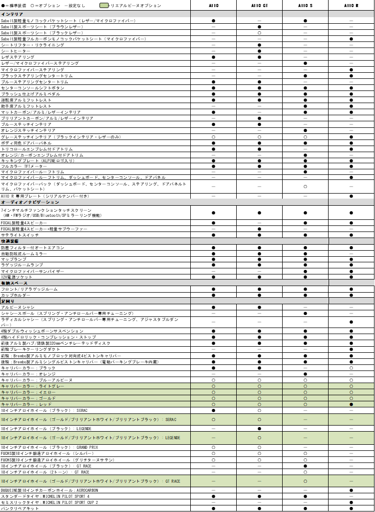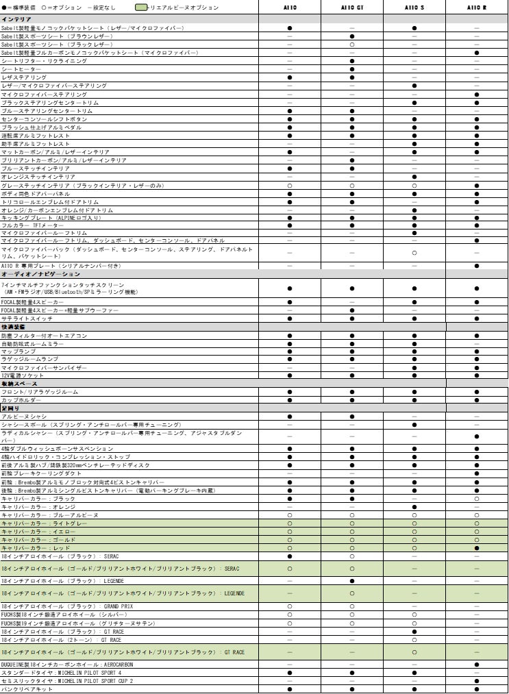- アルピーヌ A110装備表