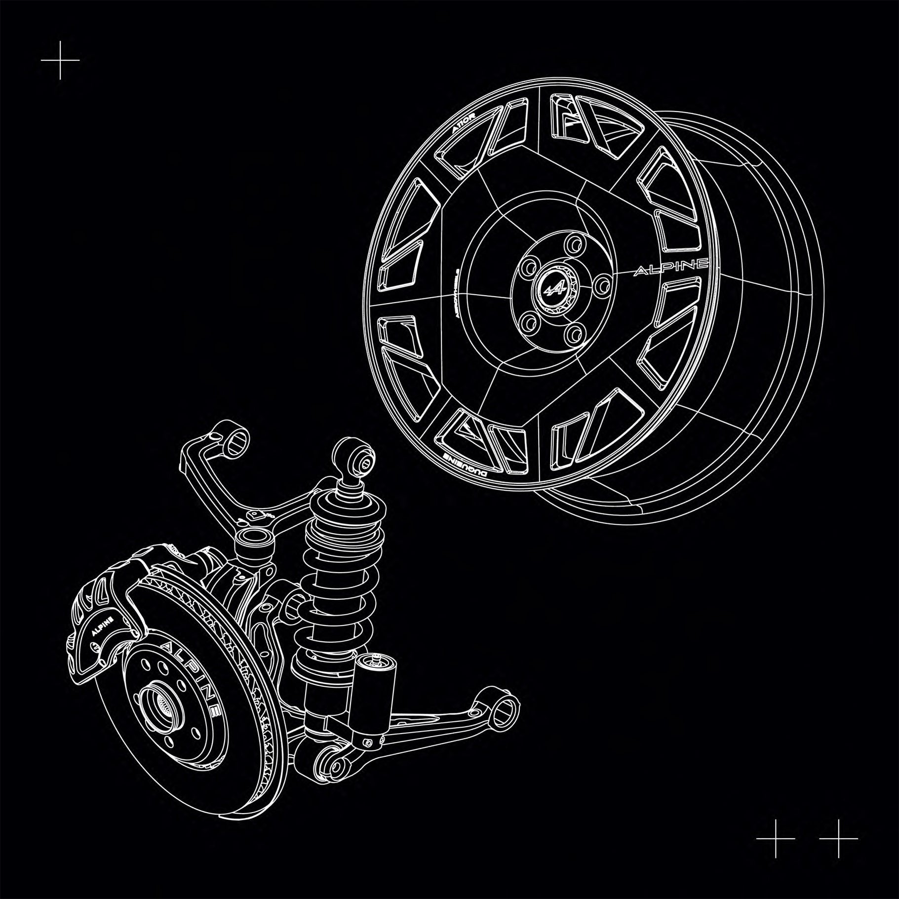 アルピーヌ A110 Sよりも車高が10mm低められ、ロール剛性が高められた専用シャシーには、さらに10mm車高を下げることができる車高調整機能と、減衰力調整機能が付いたダンパーが組み合わされ、負荷の大きい前輪のブレーキを冷却するための前輪ブレーキクーリングダクトが装備されています。