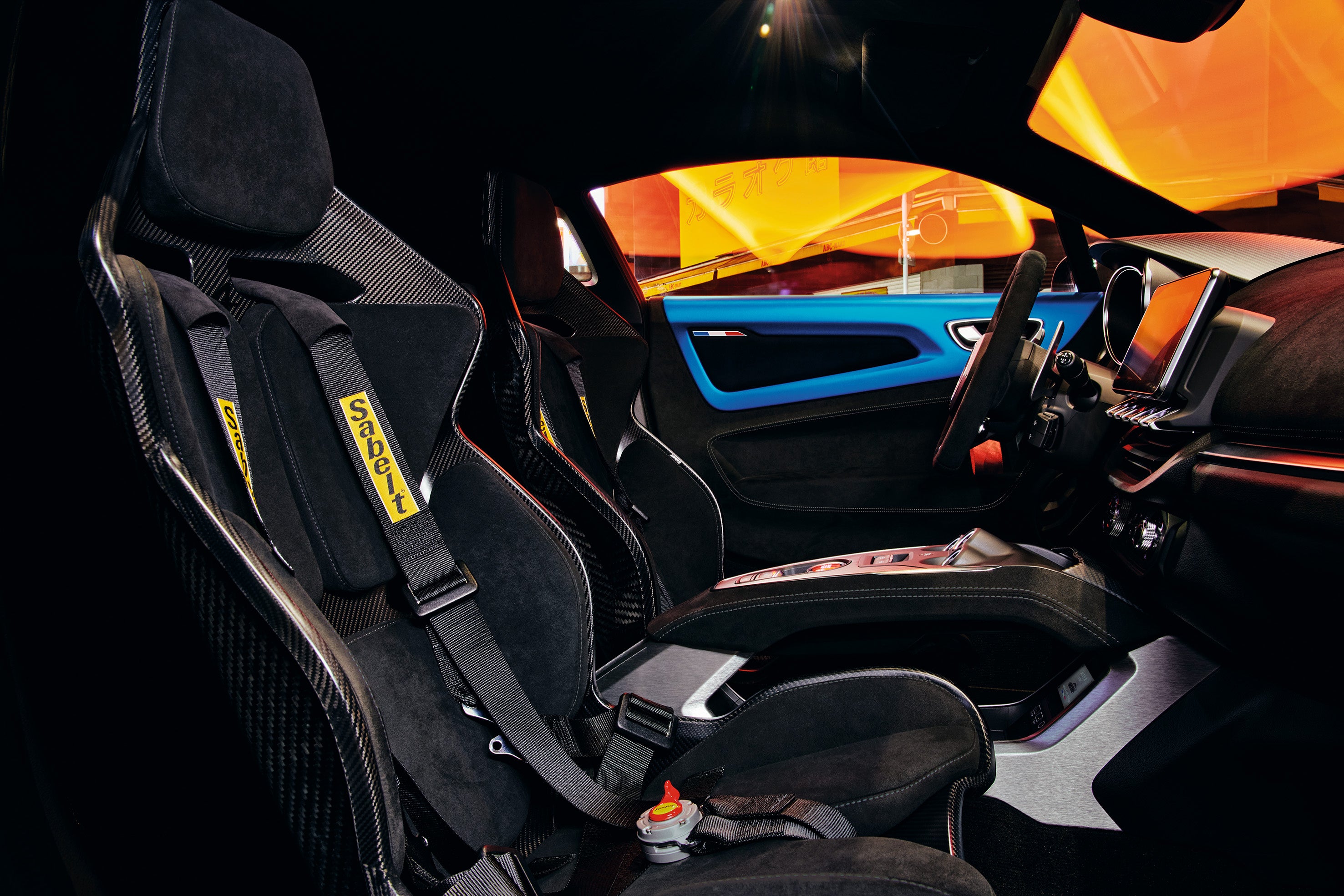 Sabelt製軽量フルカーボンモノコックバケットシートも、軽量化に貢献しています。運転席と助手席には、6点固定式レーシングハーネスを備えています。マイクロファイバーの生地に覆われ、 グレーのステッチが施されたこのシートは、本格的なスポーツカー体験を演出しながらも、高速走行時には優れた安全性と快適性を提供します。