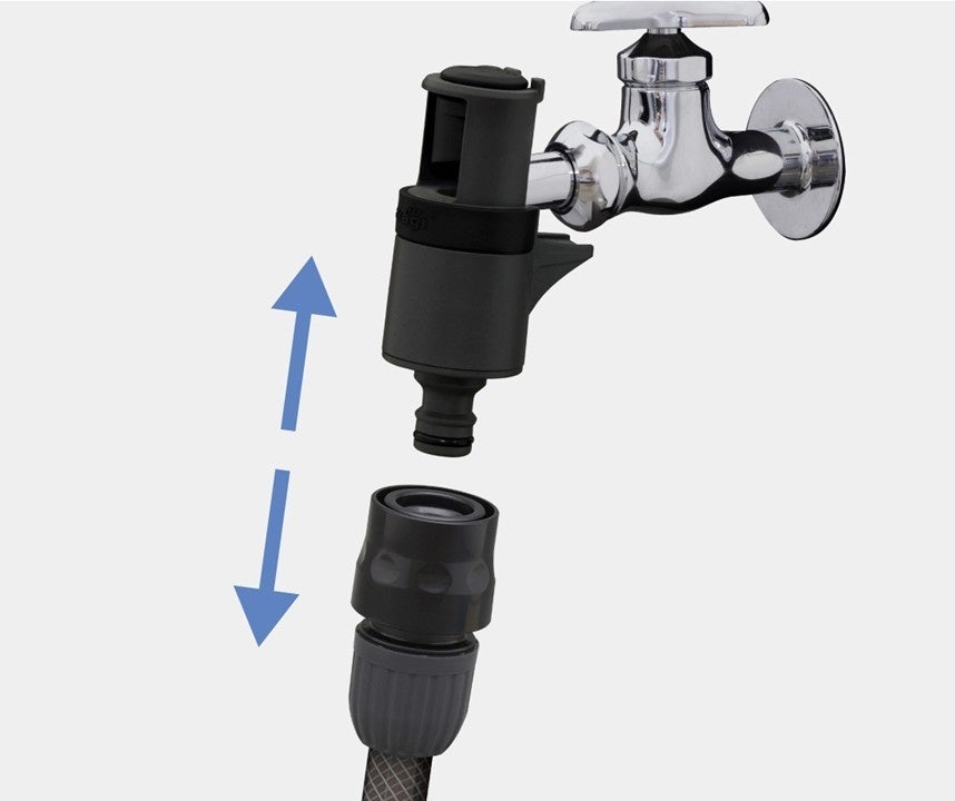 蛇口に差し込んでレバーを締めるだけ。蛇口を傷つけることなく、工具不要で簡単取り付けが可能です。当アダプターは2021年度に「グッドデザイン賞」を受賞しています。