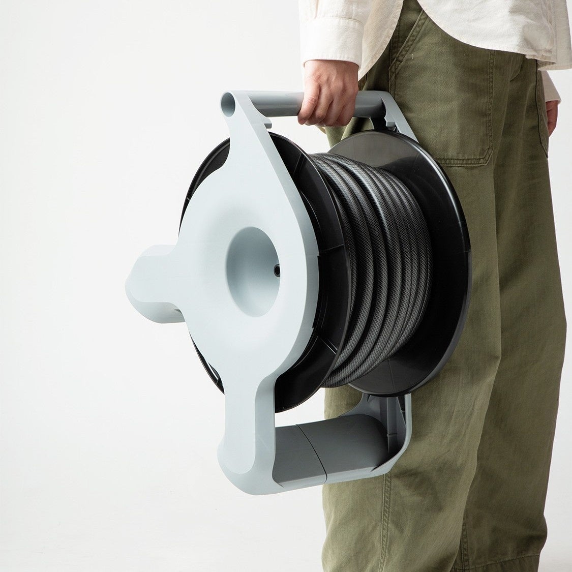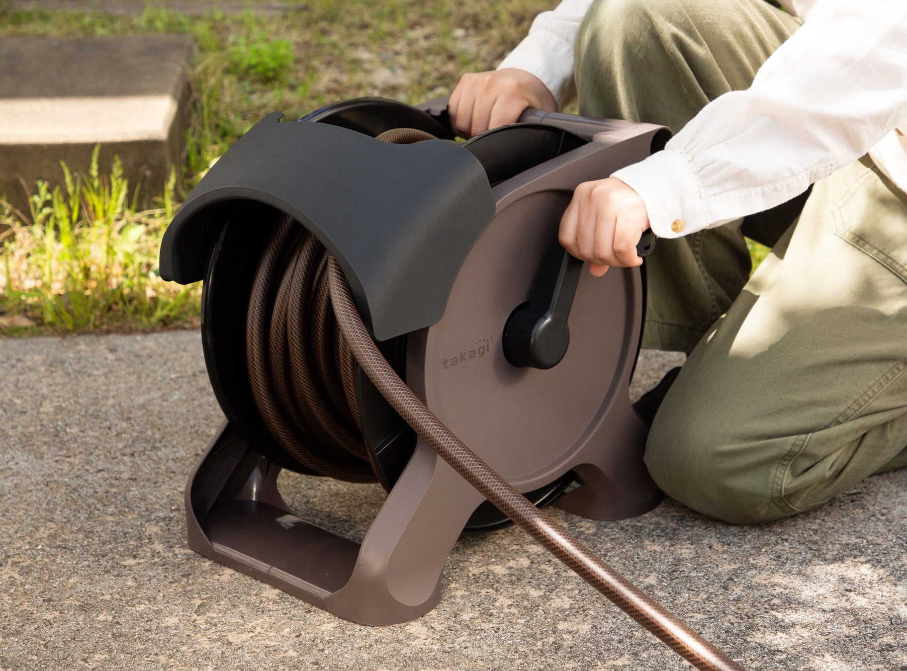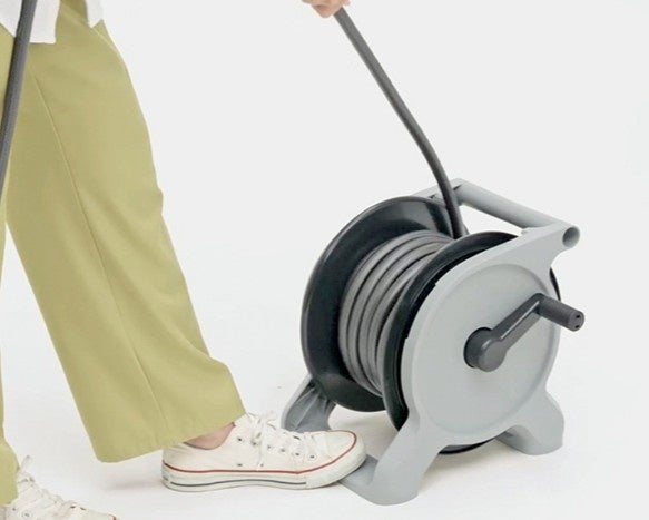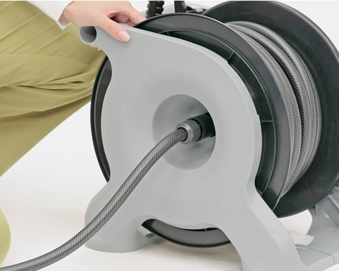 このシリーズに搭載されている「ツイスターホース」には内部にスパイラル状に糸を編み込むことで、ホースがねじれにくい仕様になっています。また、踏板部を設けており、ここを足で固定することでよりスムーズにホースを引き出せます。