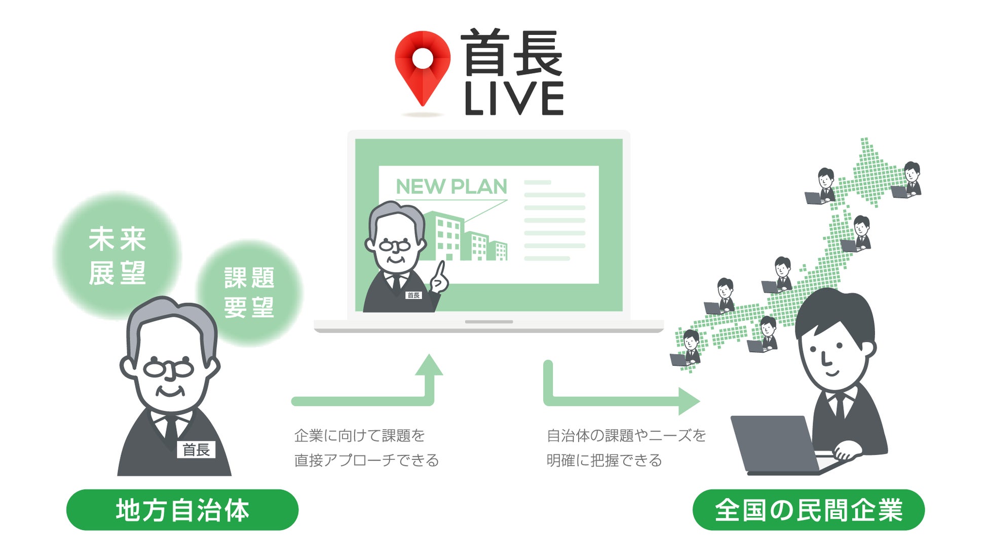 自治体の首⻑ご本人がライブ出演し、自治体の抱える課題や今後実現していきたい未来など、地域貢献を考える企業に向けて、直接想いを届けることを目的としたオンライントークイベントです。