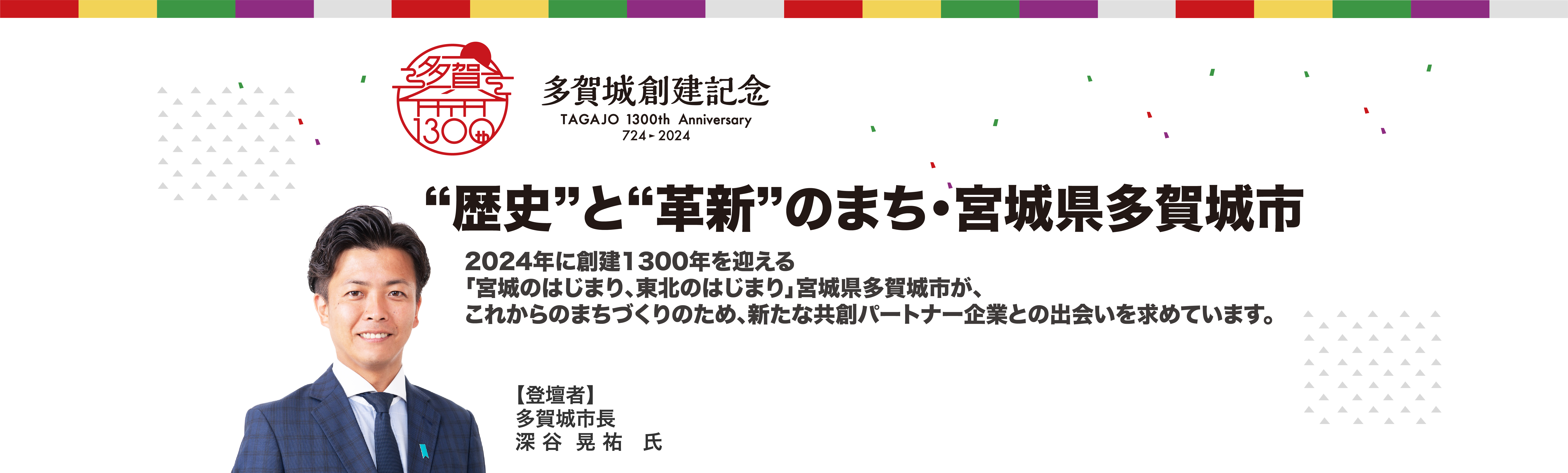 多賀城市では、この創建1300年を記念して多種多彩なイベントを開催します。そして連綿と培われてきた 悠久の歴史や文化といった唯一無二の個性と、革新的なデジタル技術をまちづくりに活かすため、新たな共創パートナーとの出会いを求めています。