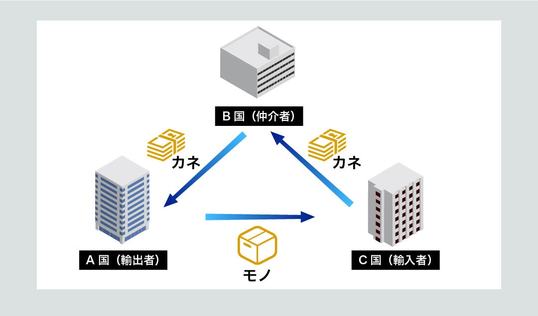 日本を拠点としての輸出入や、日本を介さないオフショア取引(三国間貿易)など、