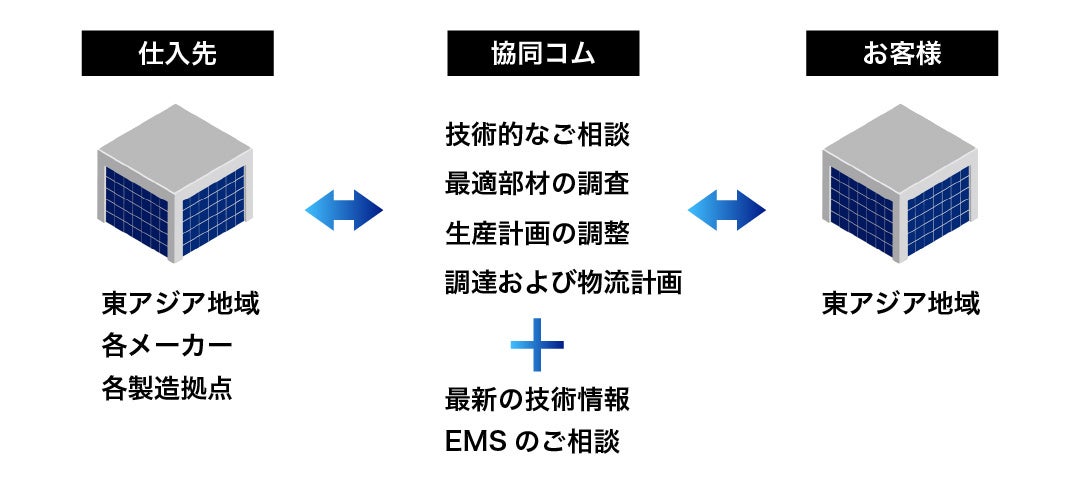 仕入先メーカーの最新情報の発信にくわえ、各国の製造拠点情報を活かしEMSのご相談も承ります。