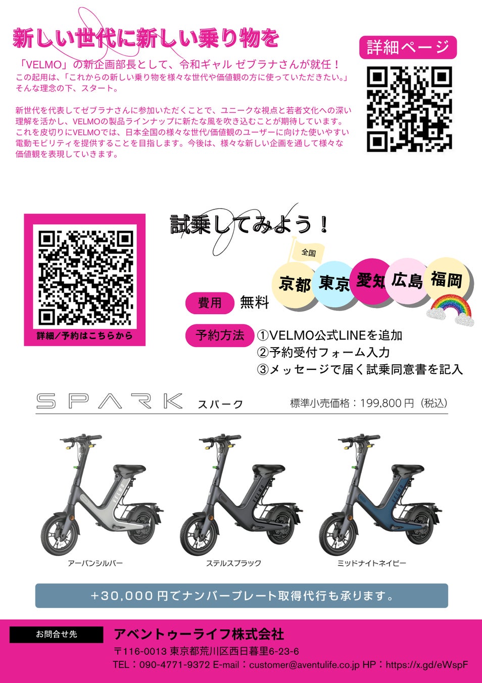 VELMO SPARK(「漕がなくていい自転車」)は、予約販売において、3000万円を達成し、6月より一般販売が開始する特例特定小型原動機付自転車です。