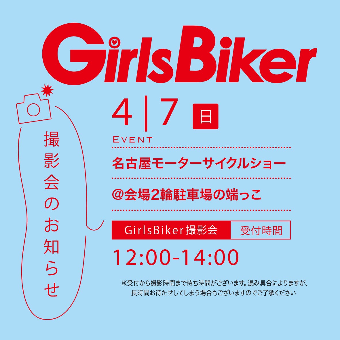 女性ライダー専門誌のパイオニア「Girls Biker」が4/7(日)に会場の二輪駐車場にてスナップ撮影会を開催!