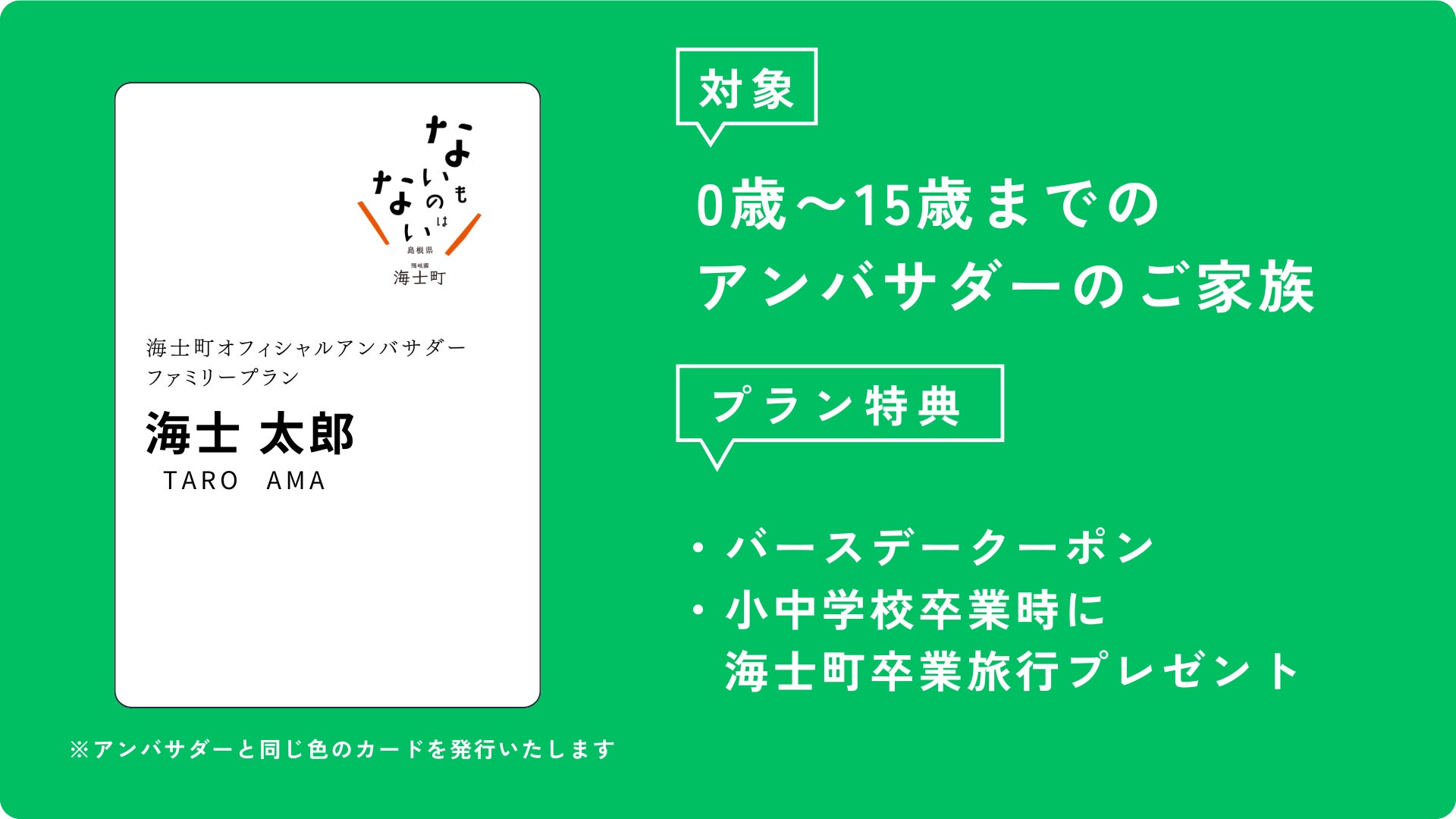 住んでいる・いないにとらわれず、好きな地域と繋がることが出来るデジタルサービス『海士町オフィシャルアンバサダー制度』では、海士町とのつながりを家族まるごと楽しむことが出来る新プランをリリースします。