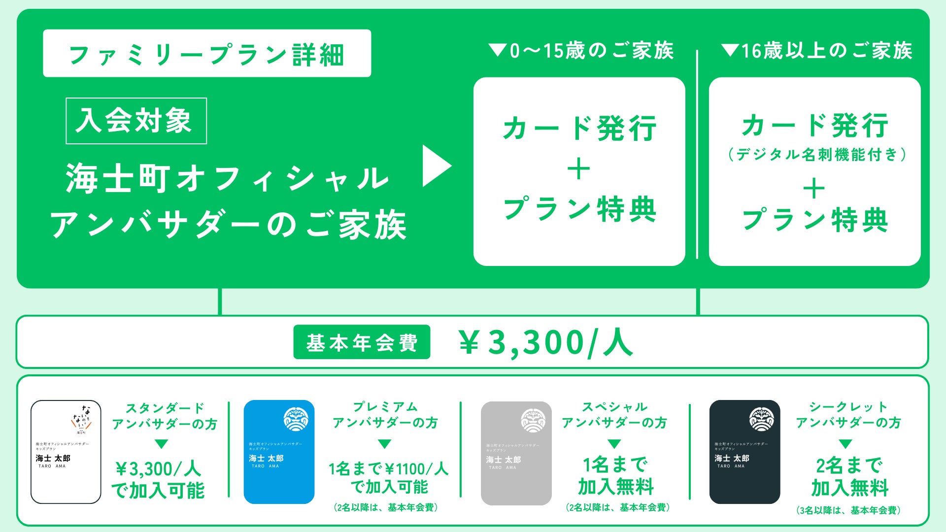 本サービスでは3つのプランを選択して入会することができ、入会後、海士町オフィシャルアンバサダー(以下、アンバサダー)には、デジタル名刺「海士町オフィシャルアンバサダーカード」が付与されます。