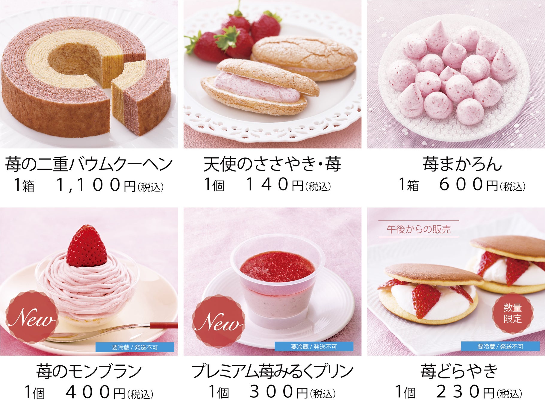 店舗では、土日限定販売の「あまおうの苺大福」、毎日焼き立てを午後から販売する「苺どらやき」をご用意しております。お近くに立ち寄りの際はぜひお買い求めください。
