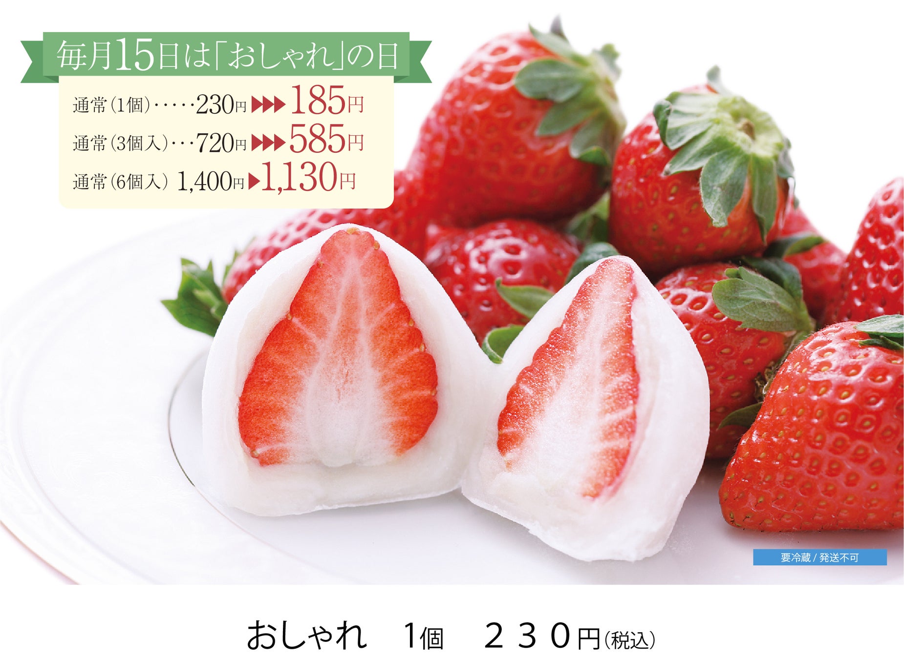 また、「おしゃれ」を販売している期間、毎月15日にはいちごの日と称して特別価格でご提供しています。