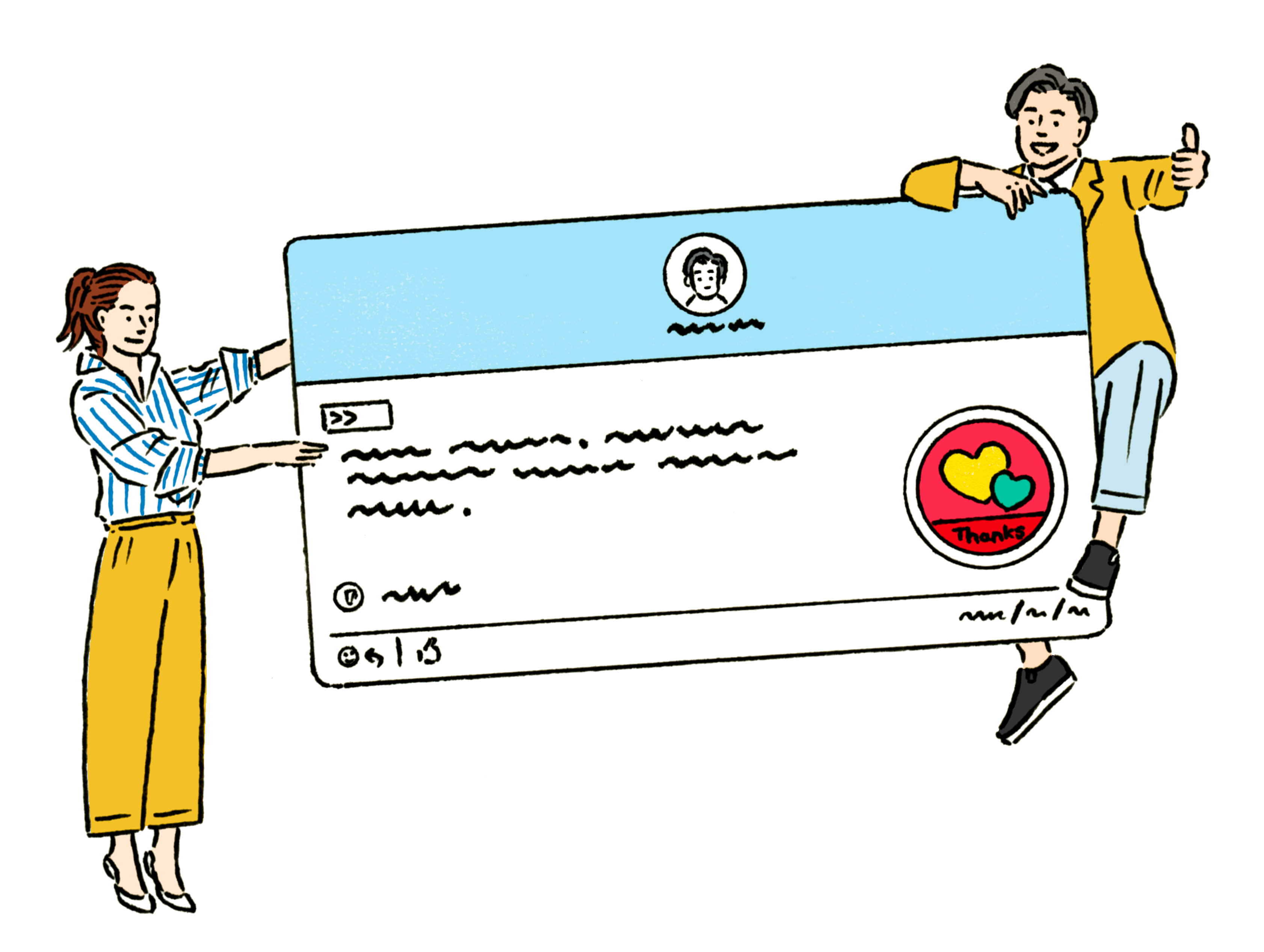 チームステッカーは、感謝と称賛を伝えるデジタルサンクスカードサービスです。Microsoft Teamsに対応し、NECをはじめ、長谷工グループ、東急建設など、働き方改革先進企業を中心にお選びいただいています。「すべての人が楽しく働く世界」の実現を目指して、私たちは世界に笑顔で働く人々を増やすことに全力で取り組んでまいります。