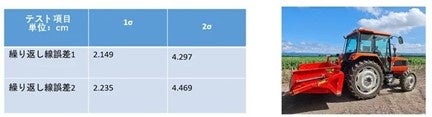 農業用トラクターの自動操舵で直線走行がどこまで安定するかを評価する。