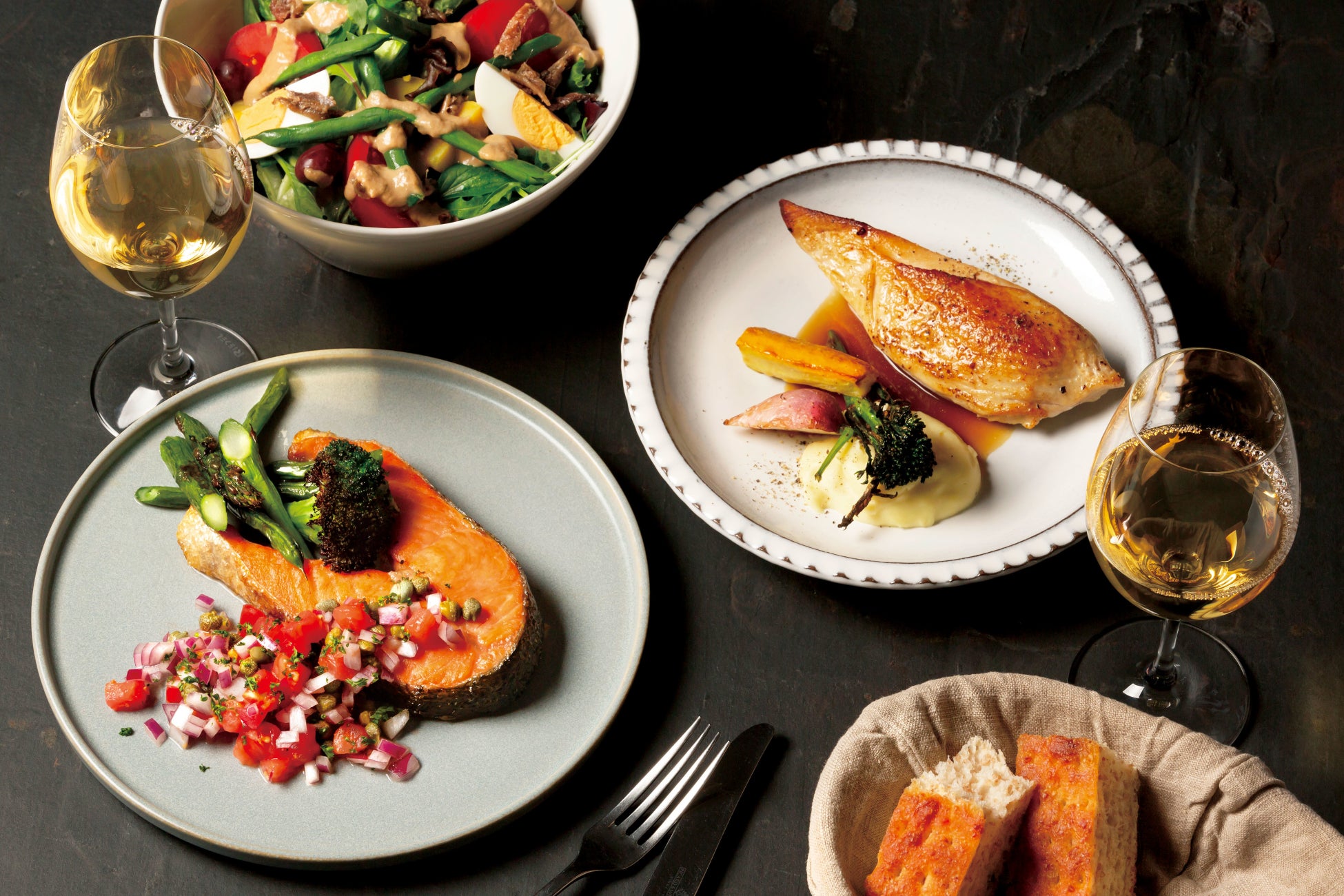 魚、野菜、肉、パスタと幅広いメニューは、忙しいワーカーの癒しとエネルギーの源に!お料理に合わせて作られた自家製パンと一緒に、ソースやドレッシングを最後の一滴までご堪能いただけます。