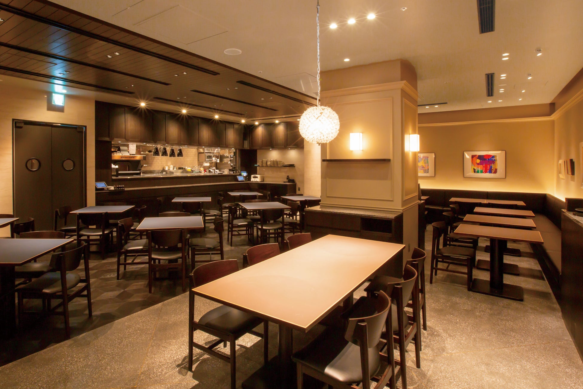 ニューヨーカーがカジュアルにもフォーマルにも立ち寄るレストランをイメージした店内は、バーテンダーが入口でお出迎え。奥へと続くバーカウンターは、ディナーメニューをつまみながら一杯飲みたい時や、待ち合わせ場所としてもご利用いただけます。美味しい時間をしっかりと味わいたい!というお客様には、レストラン席をご案内。新鮮な魚や旬の野菜など厳選した食材にフレンチ、和風、エス ニックなどの一捻りの工夫を効かせた料理を、ソムリエセレクトのワインと共にご提案します。 艶やかな色調の店内で、食欲をそそる驚きに満ちた料理の数々をお愉しみください。