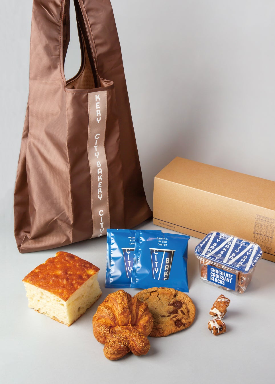 丸の内オアゾで先行販売する新色のエコバッグをはじめ、店舗限定のシリアルフォカッチャや定番人気のプレッツェルクロワッサンなど、THE CITY BAKERYを満喫できるセット。数に限りがありますので、お早めに!プレッツェルクロワッサン/シリアルフォカッチャ/チョコレートクロワッサンブロック/チョコレートチャンククッキー(NYサイズ)/CBブレンドコーヒードリップバッグ×2/エコバッグ(新色)¥2,500(税込¥2,700)