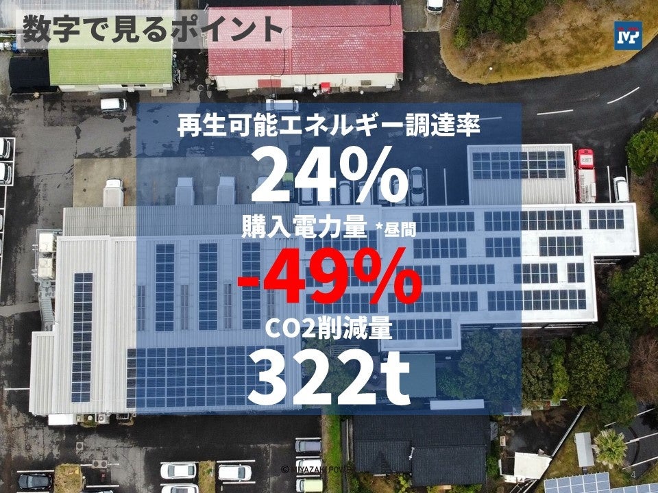 完全自家消費として稼働し、年間の電気使用量の約24%を太陽光発電でつくられた電力によりまかない、CO2排出量を年間約322t(*)削減する見込みです。