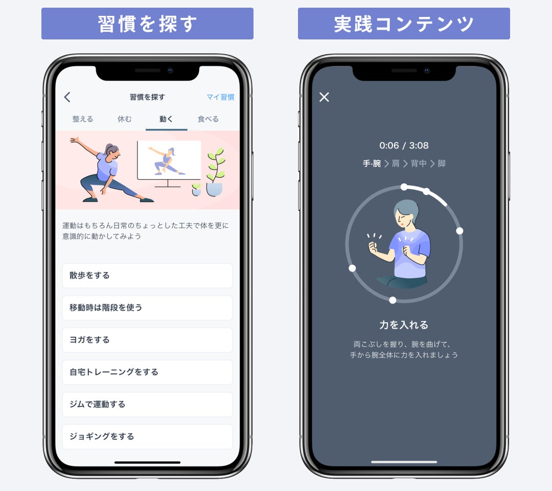 医師監修の記事で正しい知識を学びながら、呼吸法などすぐに取り組めるセッションを利用可能。日々の習慣化をサポートします。