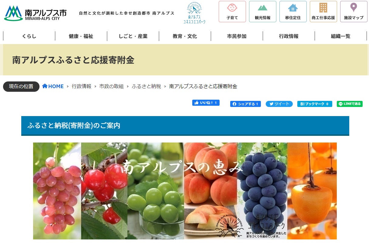 ■南アルプスふるさと応援寄附金HP:https://www.city.minami-alps.yamanashi.jp/docs/1794.html