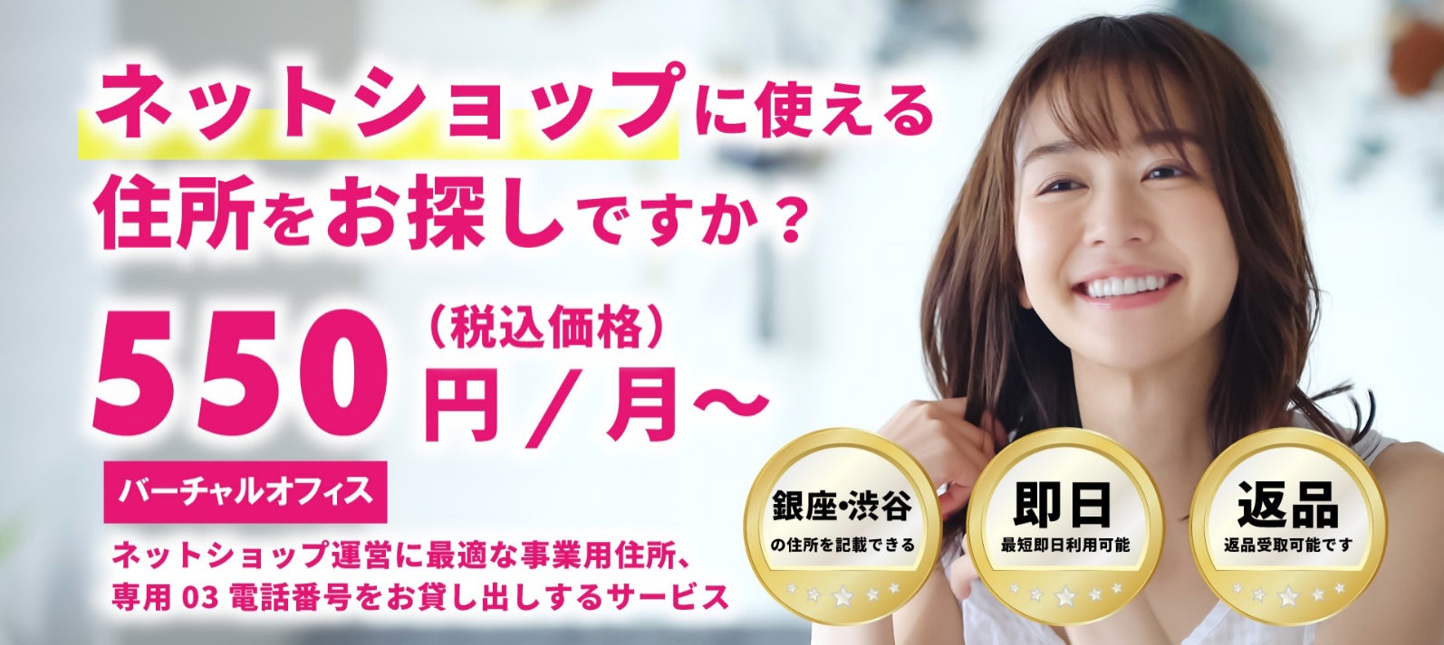月額550円で、イメージ抜群な「銀座」「渋谷」の事業用住所がレンタルできます。