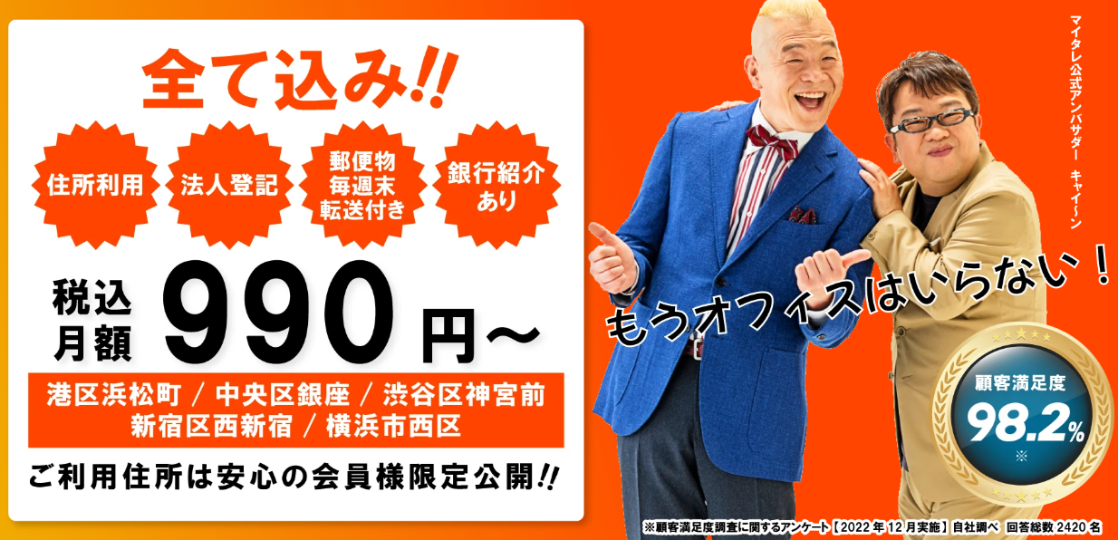 知名度の高い一等地住所が、格安でご利用いただけるのが魅力です。