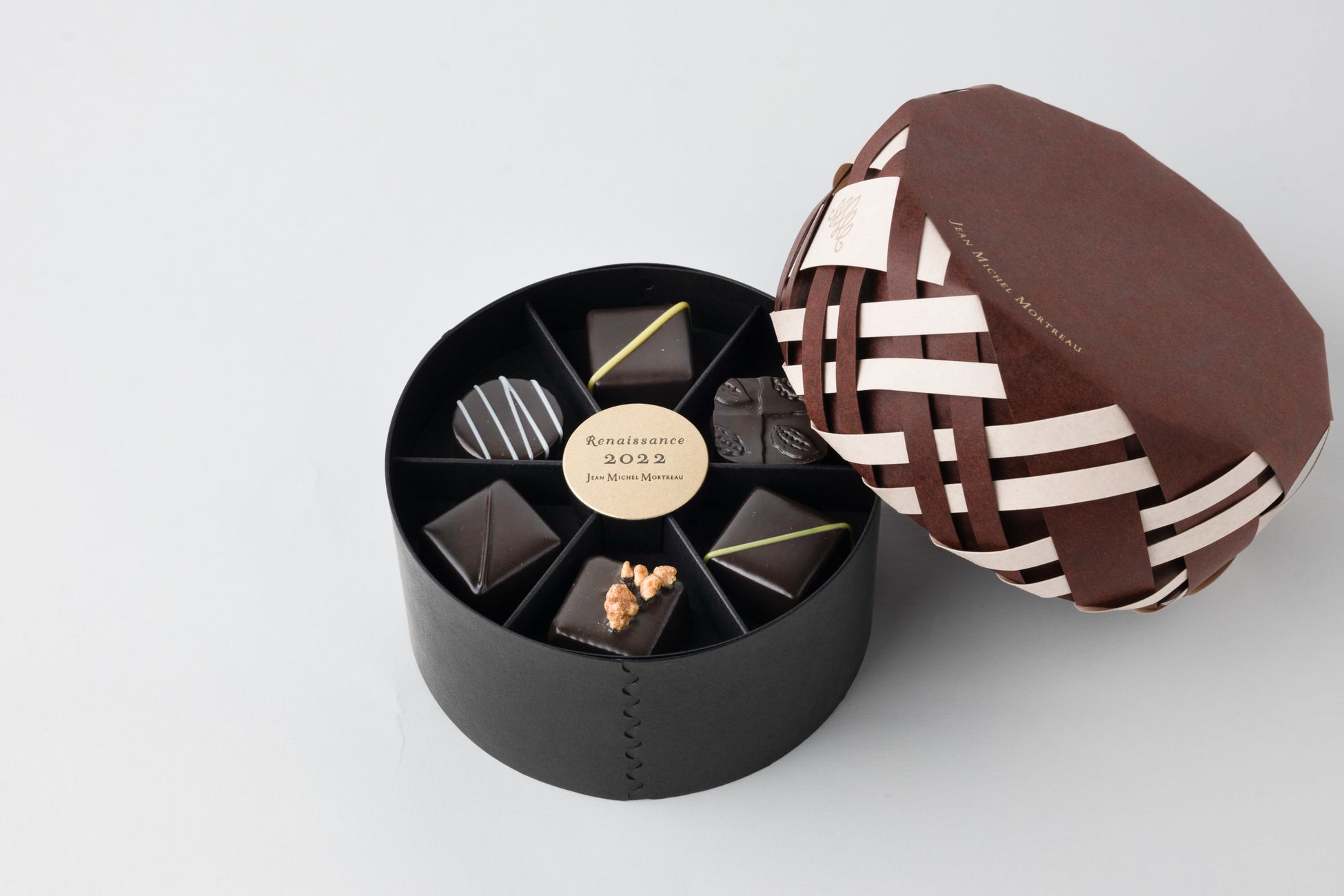 「小さなお菓子」を意味するショコラのカゴをイメージしたボックスに、リキュールの風味とカカオのマリアージュを愉しむことができるショコラを詰め合わせました。リキュールには、JEAN-MICHEL MORTREAUがこよなく愛する蒸留酒を使用。オーガニックな素材を使用したチョコレートです。2,268円/期間限定 2月3日(木)~14日(月)出店場所 ポップアップスペース「Space 1」