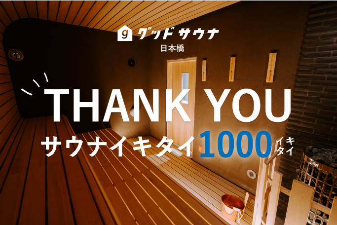 「イキタイ1000突破記念キャンペーン」は、日本最大のサウナ検索サイト、サウナイキタイにおいて、当社が運営するコワーキングスペース付きサウナ施設、グッドサウナ日本橋のイキタイ数が1000を突破したことを記念するイベントです。